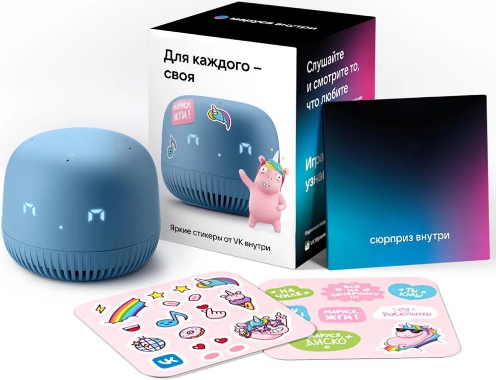 | Комплектация | Умная колонка, блок питания с кабелем, набор наклеек, ознакомительный буклет |