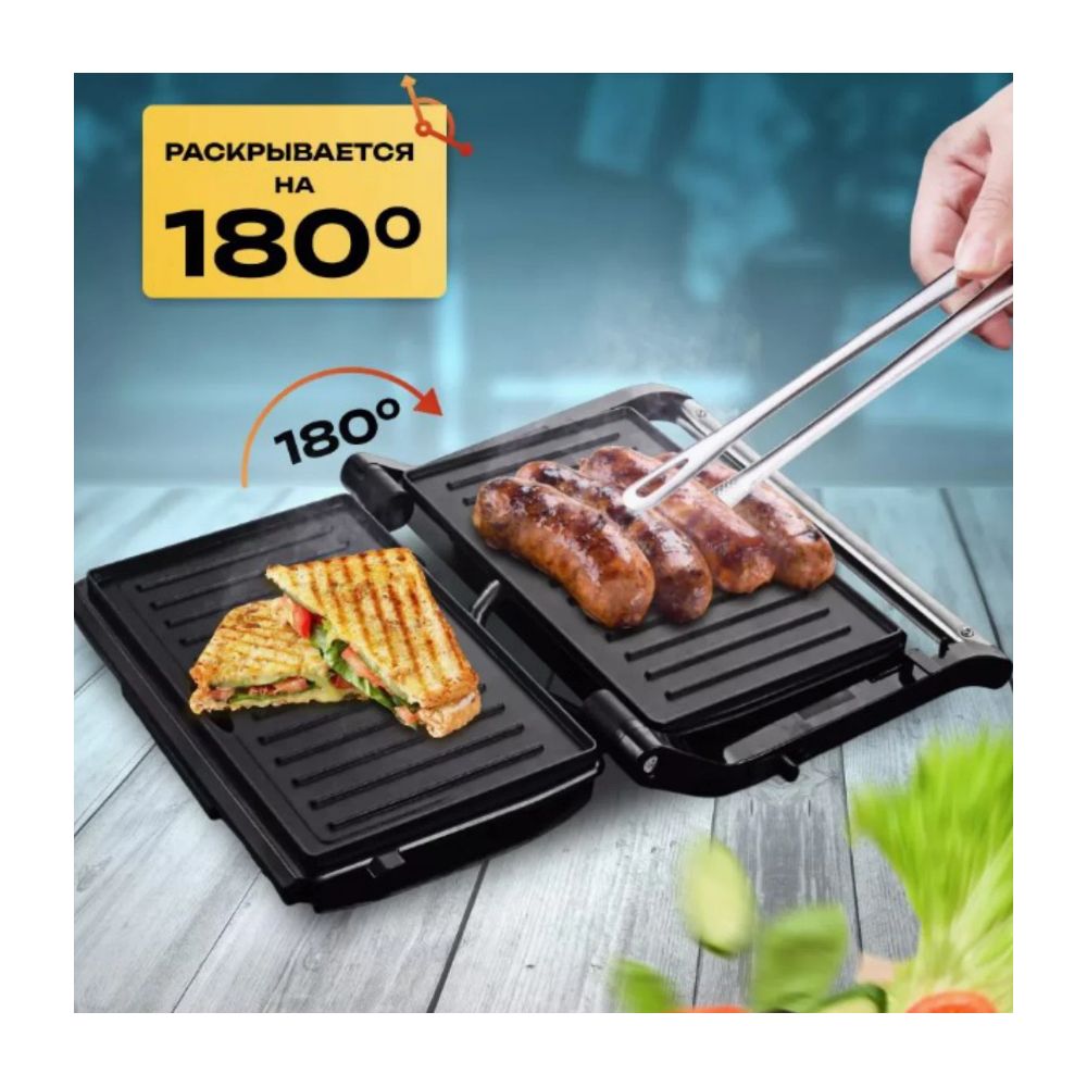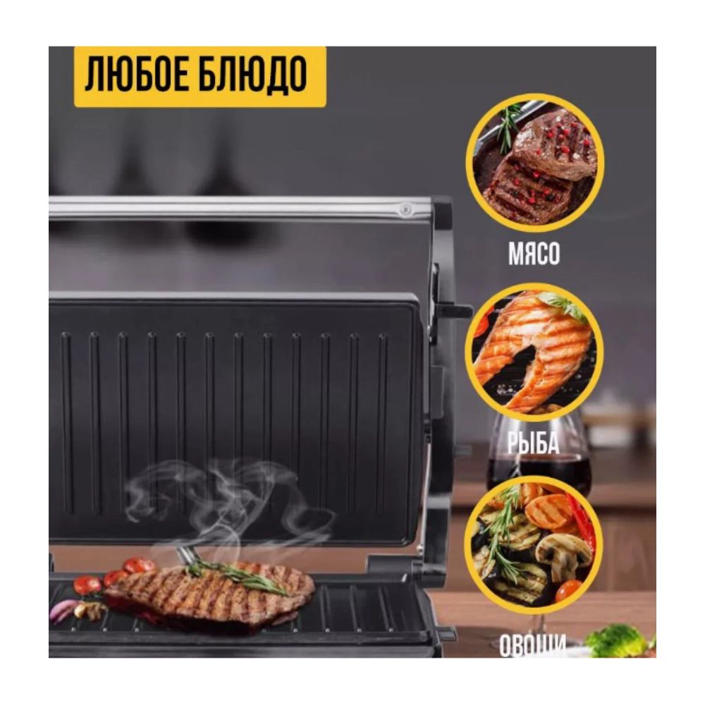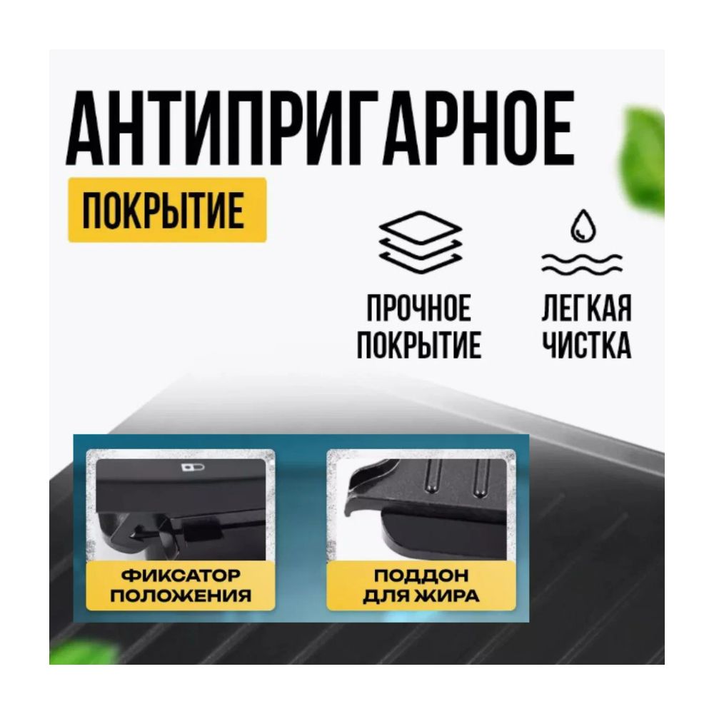 | Конструктивные особенности тепловых приборов | Антипригарное покрытие, Поддон для сбора жира, Раскрытие на 180°, Ручка для переноски |