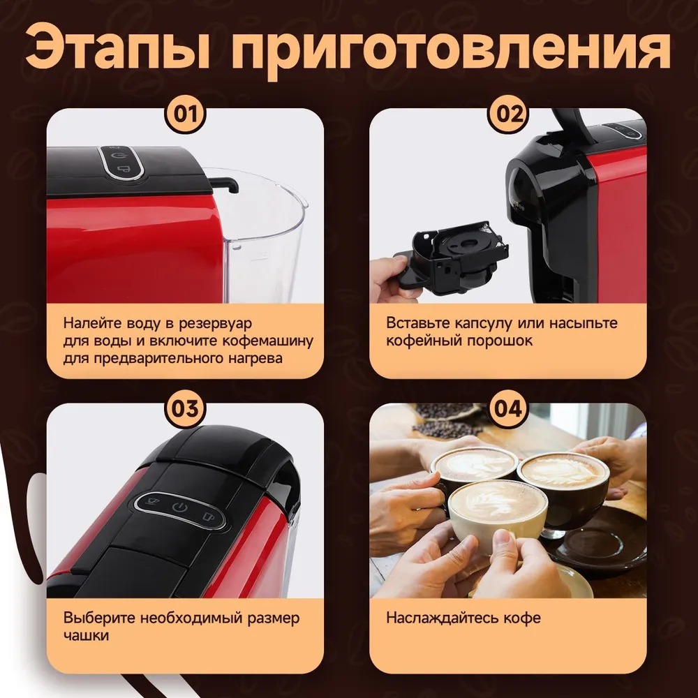 | Используемые капсулы | Nescafe Dolce Gusto, Nespresso Original, чалды |