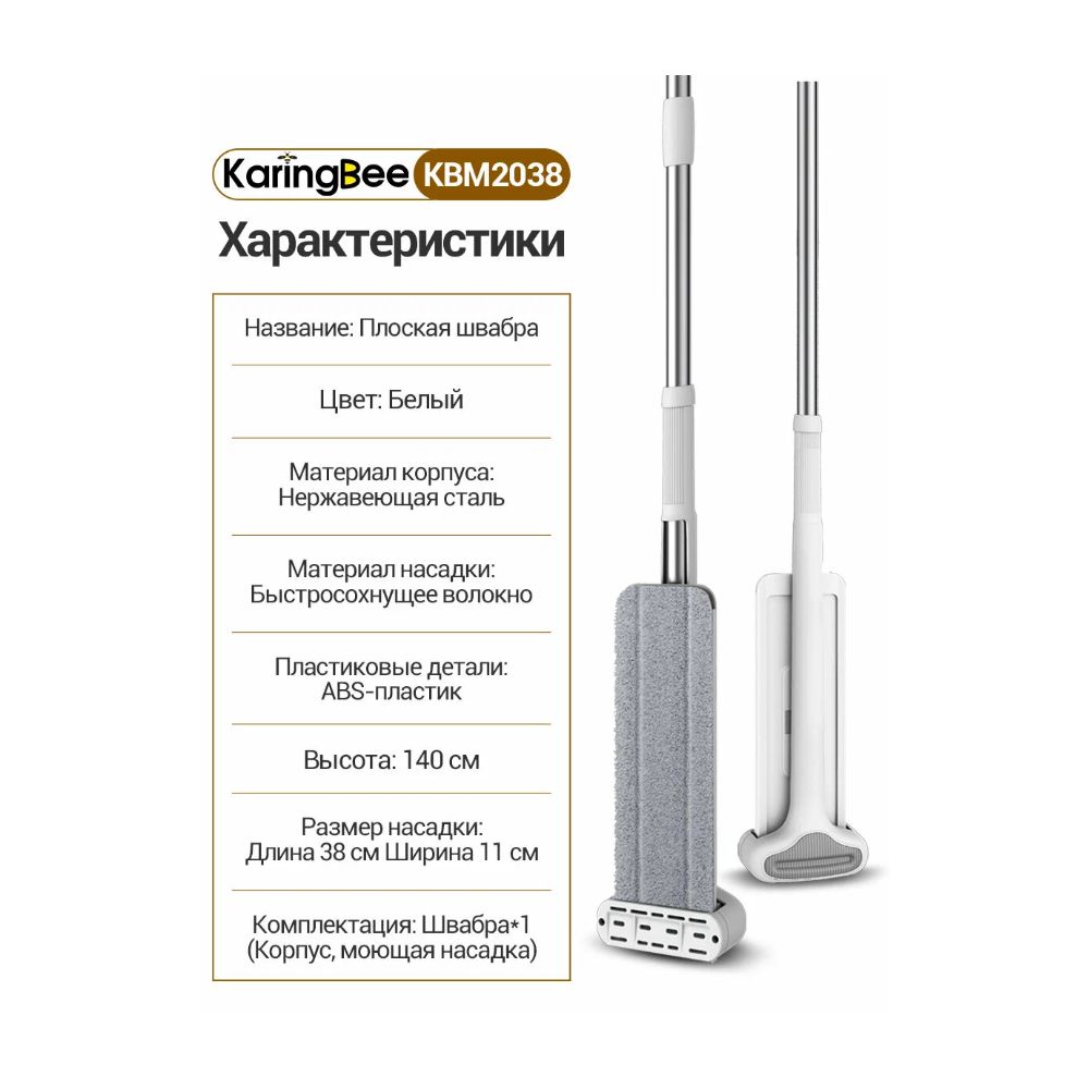 Ручная швабра с отжимом KaringBee KBM2038 – имеет уникальную систему отжима, которая позволяет легко и быстро удалять излишки воды из швабры. Это не только экономит ваше время, но и обеспечивает идеально влажное уборку без лишнего напряжения.