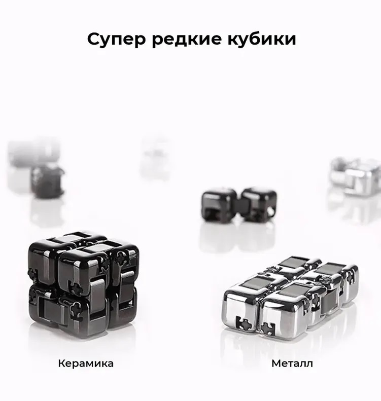 Кроме обычных кубиков самых разных цветовых сочетаний каждому может достаться совершенно уникальный кубик, выполненный из особых материалов, который непременно удивит и Вас, и окружающих!