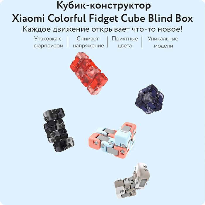 Гладкие разноцветные кубики Xiaomi так и просятся в руки не только детям, но и взрослым. Сам кубик можно вертеть и сворачивать в самые разные формы, но еще его можно разобрать и собрать вместе с элементами другого цвета, создав уникальный аксессуар только для себя. Красный цвет может стать выражением страсти, черный – спокойствия и размеренности, а синий – мягкости и вдумчивости.