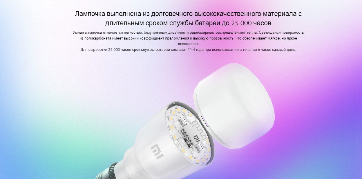 Умная светодиодная лампочка Mi Smart LED Bulb Essential оснащена высокоинтегрированными цветными светодиодами и оптимизированным оптическим профилем для более равномерного смешанного освещения с великолепными оттенками.