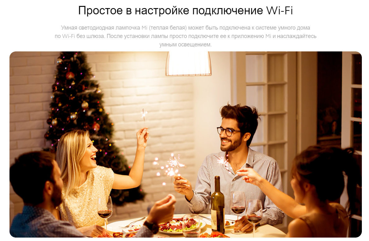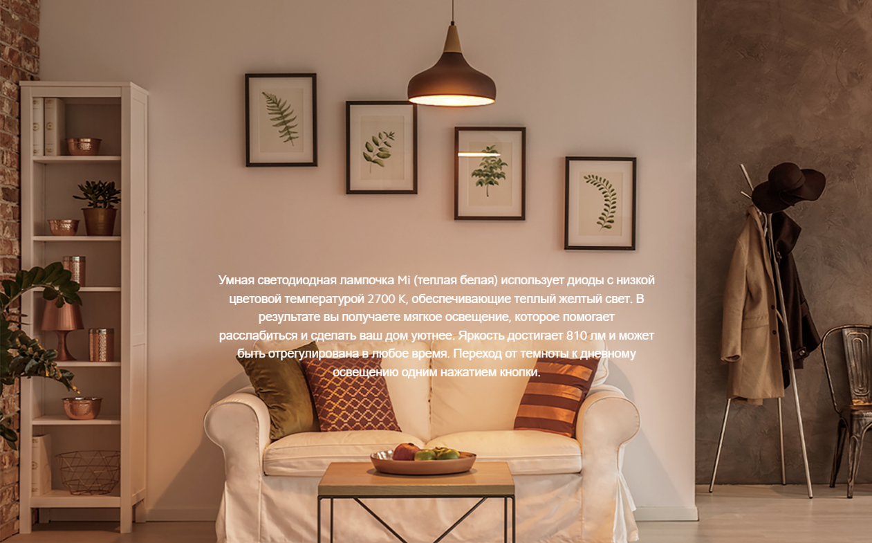 Умная светодиодная лампочка Mi (теплая белая) может быть подключена к системе умного дома по Wi-Fi без шлюза. После установки лампы просто подключите ее к приложению Mi Home и наслаждайтесь умным освещением.