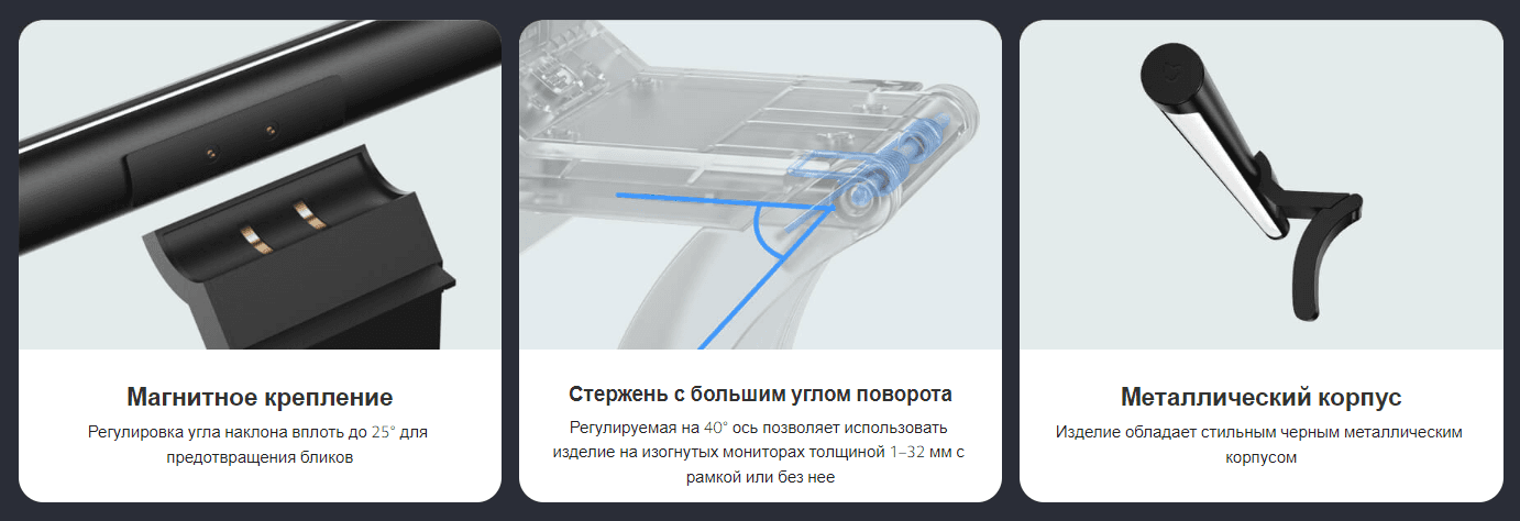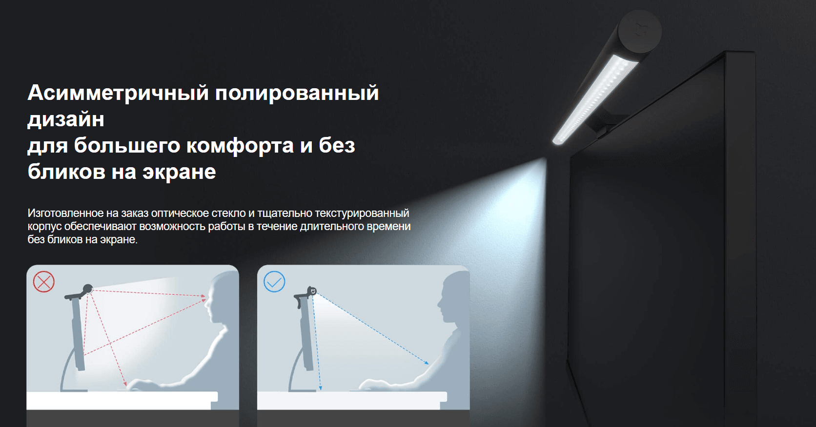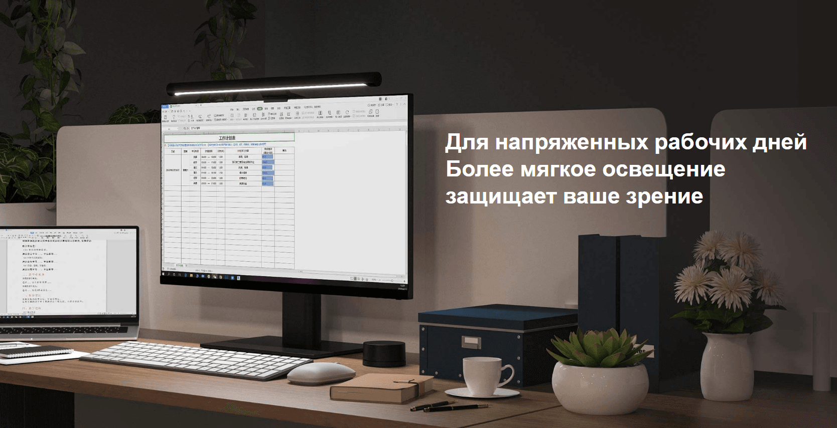 Световая панель Mi Computer Monitor Light Bar легко устанавливается и не занимает место на рабочем столе, обеспечивая вас совершенно новыми возможностями освещения.