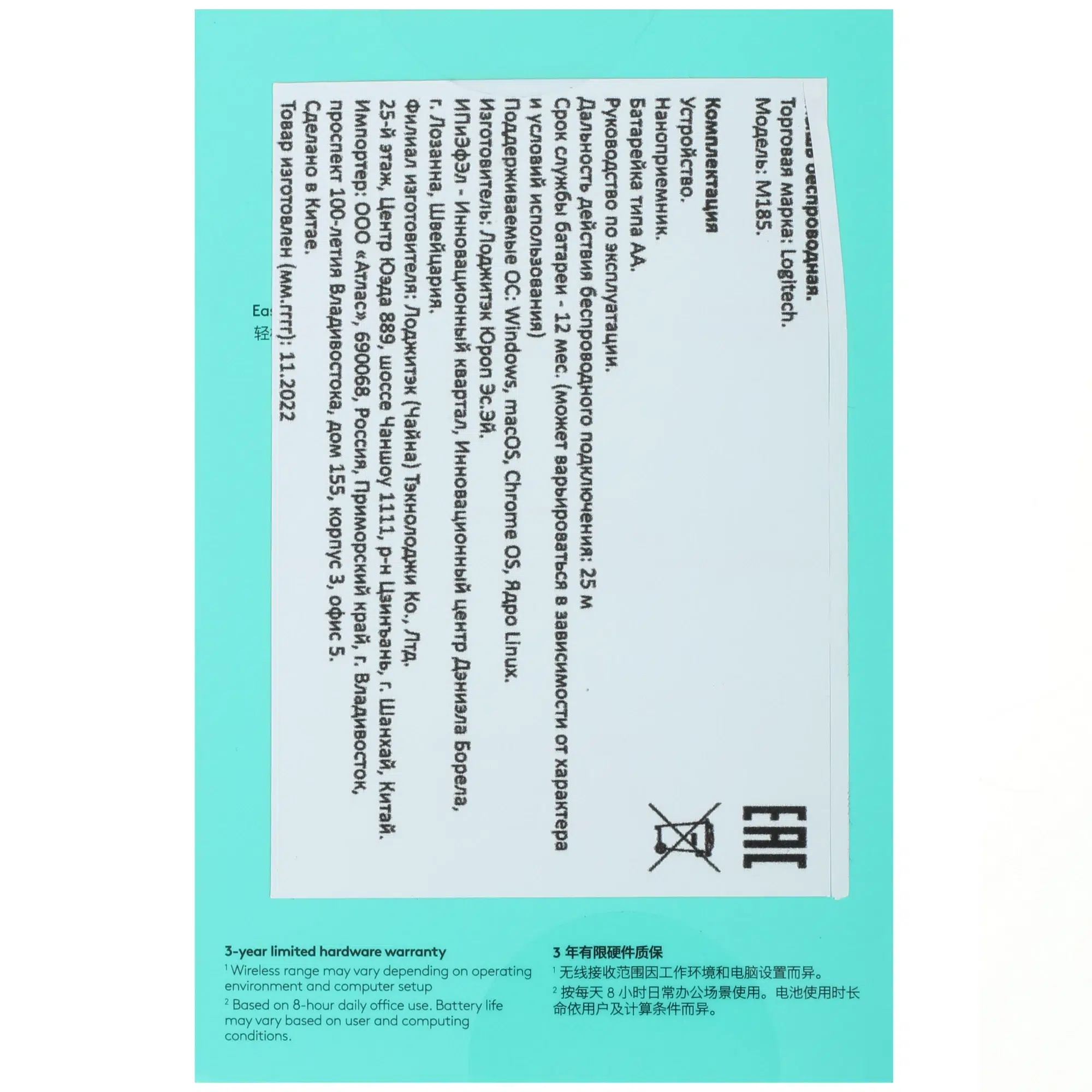| Время автономной работы мыши | До 12 месяцев |