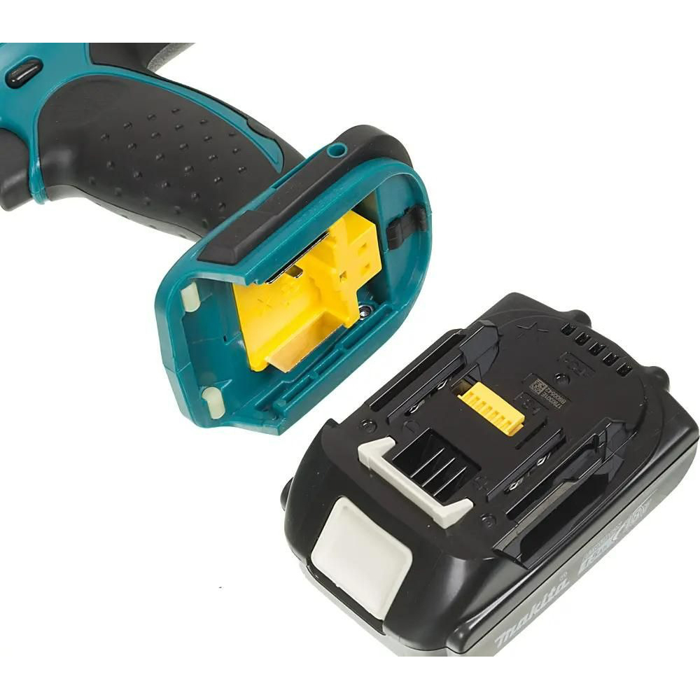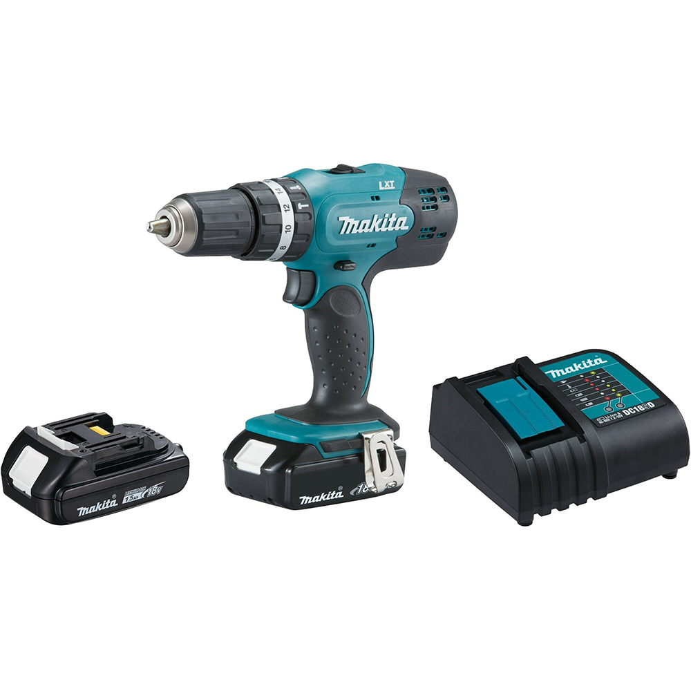 Интернет-магазин предлагает к покупке аккумуляторную ударную дрель Makita. Модель работает от аккумулятора на 18В, в комплект входят два аккумулятора емкостью 1.5Ач Li-ion. Дрель оснащена быстрозажимным патроном диаметром 13мм. Обороты дрели составляют от 0 до 400 / 1300 об/мин. Этот инструмент способен развивать силу в 4227Нм. Вес дрели составляет всего 1.7 кг, что делает ее удобной в работе. Также данная модель дрели совместима с аккумуляторами на 4Ач Li-ion.