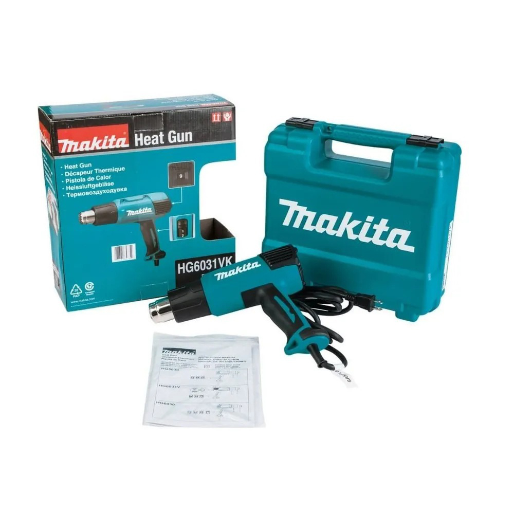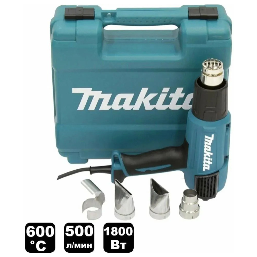 Термовоздуходувка Makita 1800Вт, 50/600 град, 250-500 л/мин, 4 насадки, кейс