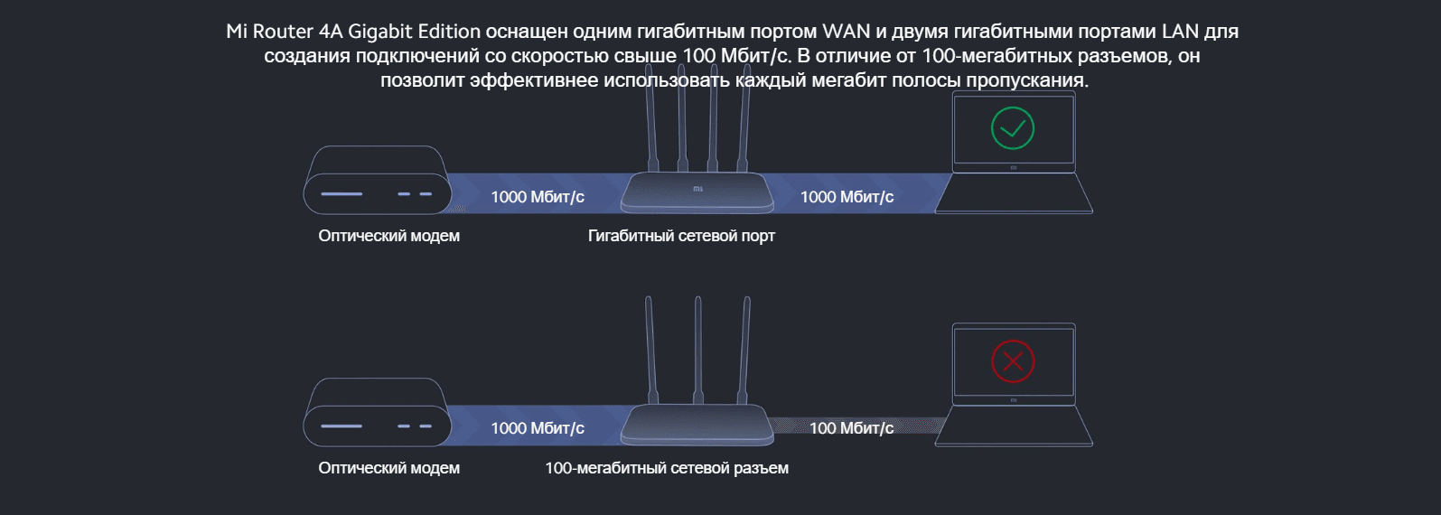 Xiaomi 4A Giga Version Wi-Fi имеет четыре всенаправленные антенны с продуманной внутренней структурой и компоновкой. Антенны улучшают производительность передачи данных даже в больших помещениях.