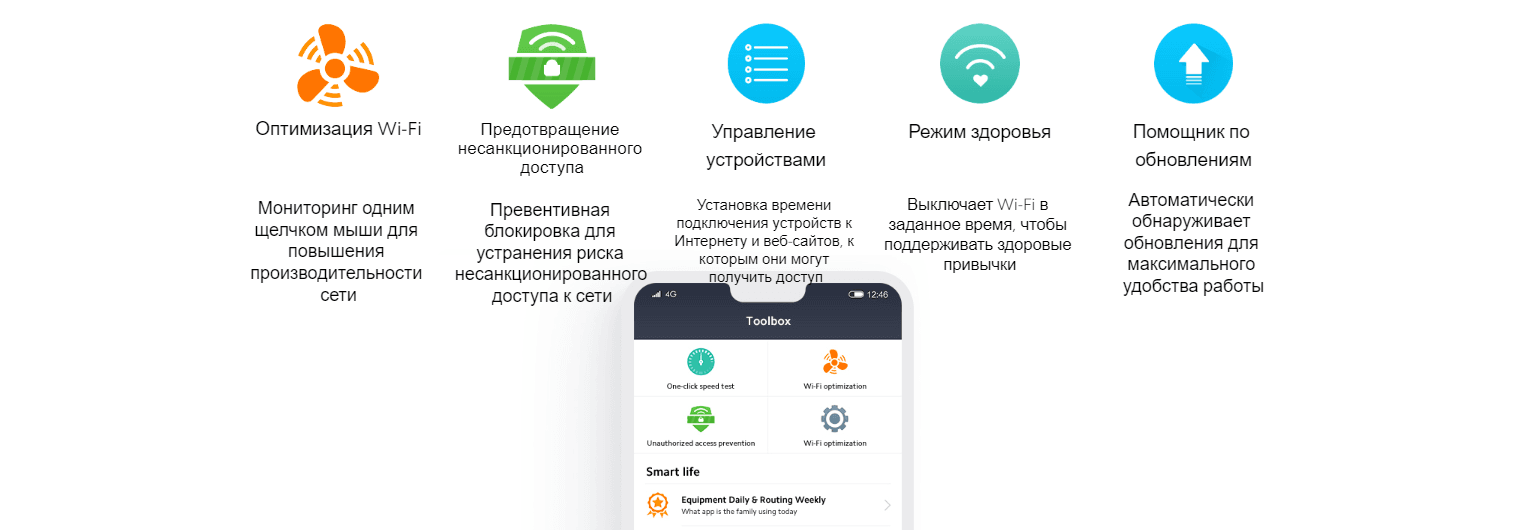 Приложение Mi WiFi содержит множество практичных функций, таких как оптимизация Wi-Fi и предотвращение несанкционированного доступа. Приложение упрощает работу с маршрутизатором и устройствами доступа, позволяя удаленно управлять ими в любое время и в любом месте.