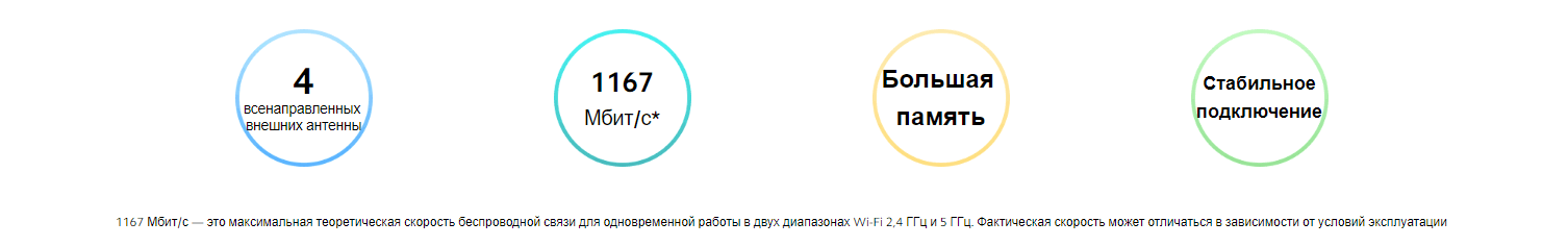 | Максимальная скорость по всем WiFi диапазонам | 1167 Мбит/с |
