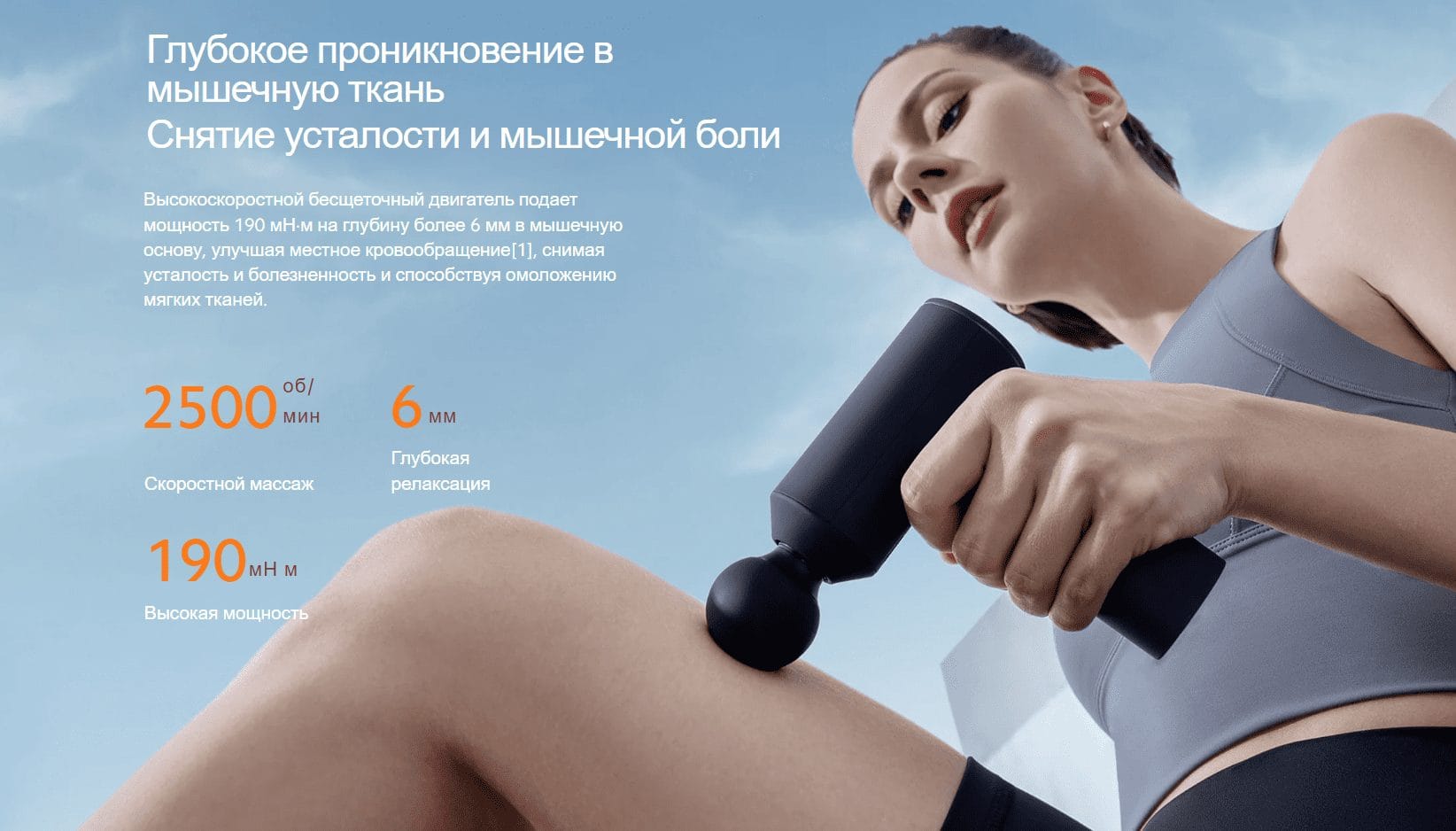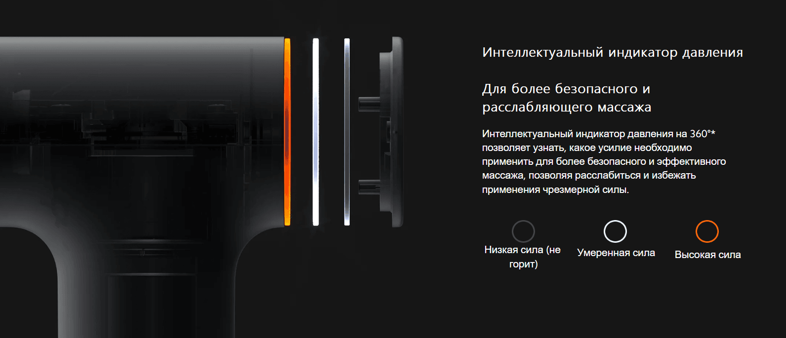 Внутренняя интеллектуальная система измерения давления определяет приложенное давление и постепенно увеличивает силу и скорость удара, позволяя массажу воздействовать на те болезненные области, которые требуют большей силы, с глубоким проникновением в мышцы, что быстро снимает усталость.