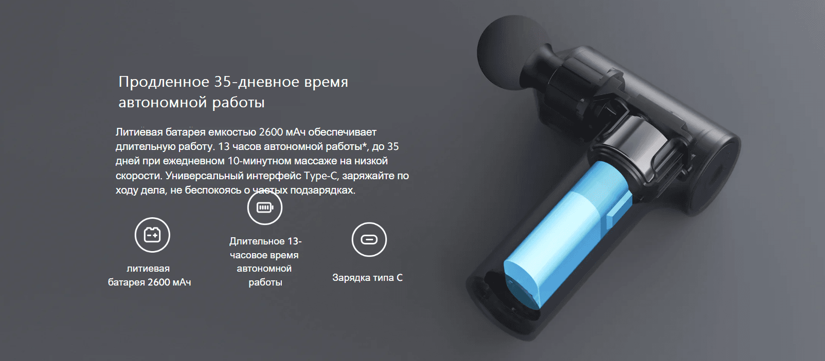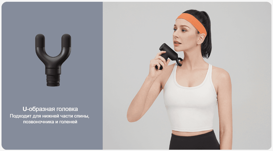 Мягкая, упругая силиконовая массажная головка, гладкая, приятная на ощупь, подходит для чувствительной кожи, с амортизирующей защитой, предотвращающей повреждение мышц.
