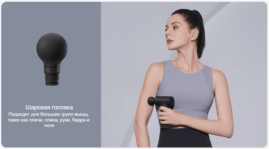 | Комплектация | Массажер, сферическая насадка, U-образная насадка, плоская насадка, кабель зарядки, шнурок на руку, мешочек для хранения, документация |