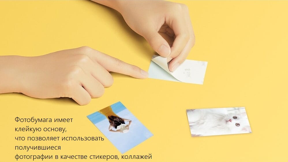 Фотобумага имеет клейкую основу, что позволяет использовать получившиеся фотографии в качестве стикеров, коллажей. Для этого просто нужно снять защитный слой.