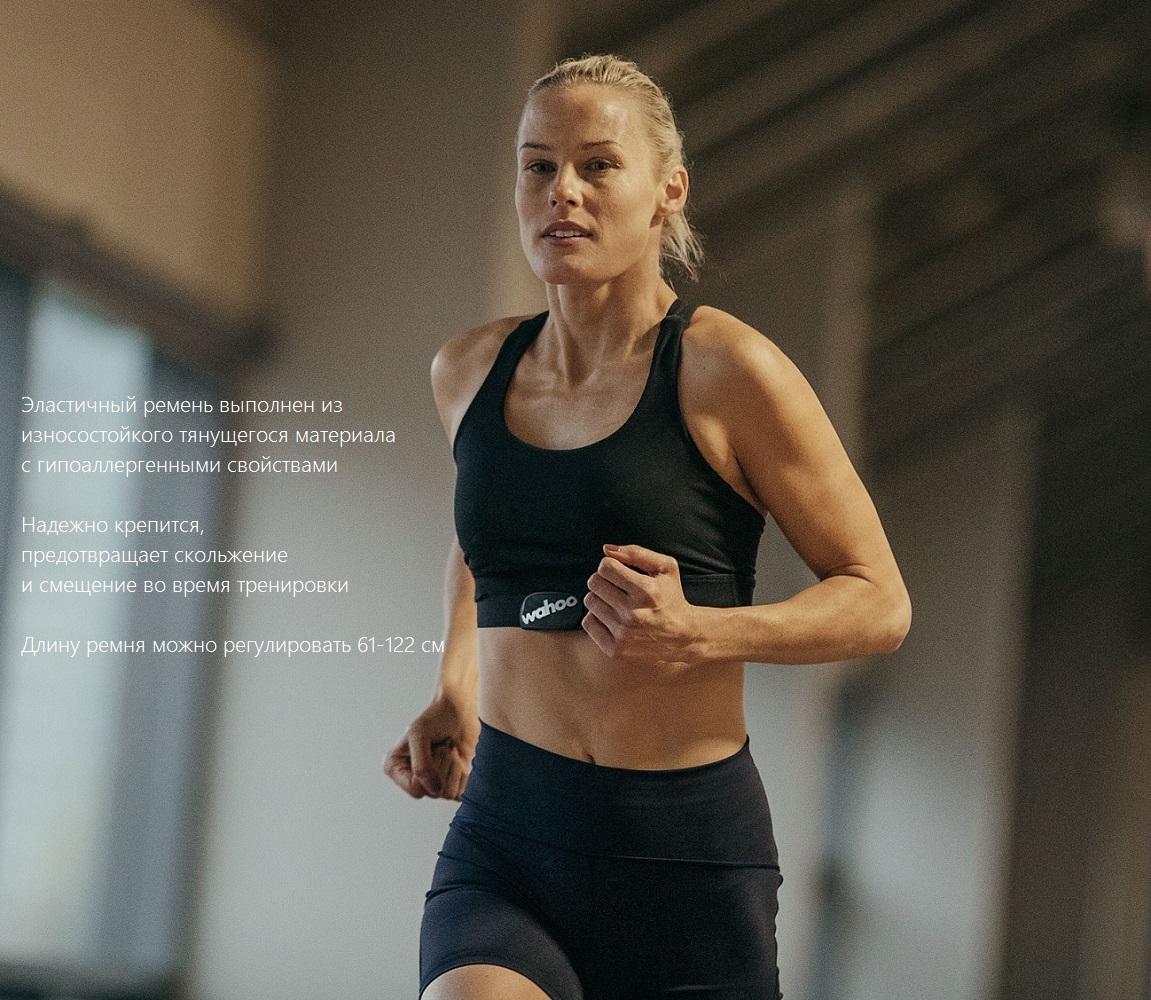 Эластичный ремень выполнен из износостойкого тянущегося материала с гипоаллергенными свойствами. Надежно крепится и предотвращает скольжение и смещение во время тренировки. Длину ремня можно регулировать — 61-122 см.