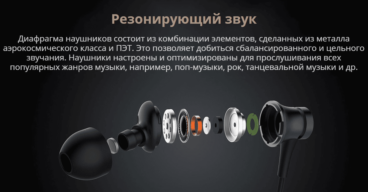 Диафрагма наушников состоит из комбинации элементов, сделанных из металла аэрокосмического класса и ПЭТ. Это позволяет добиться сбалансированного и цельного звучания. Наушники настроены и оптимизированы для прослушивания всех популярных жанров музыки, например, поп-музыки, рок, танцевальной музыки и др.