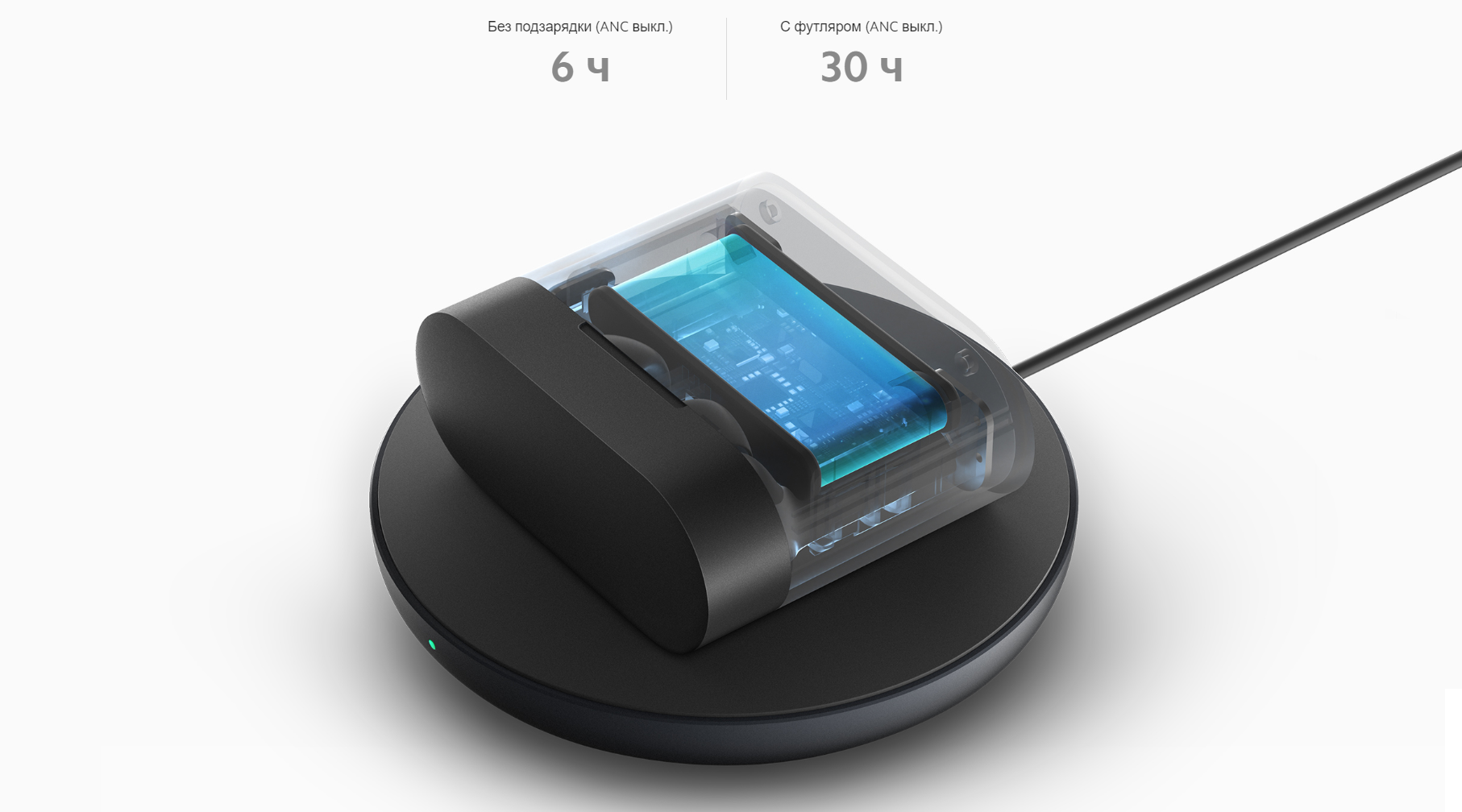 Чип нового поколения является более энергоэффективным, что позволит вам слушать музыку на протяжении более длительного периода времени. Без подзарядки аккумулятора хватит на 6 часов использования, а с футляром для зарядки вы получите до 30 часов прослушивания.