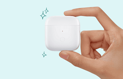 Совершенно новый дизайн компактного зарядного кейса обладает гладкими округлыми контурами и твердыми краями, обеспечивающими более удобное положение в руке.