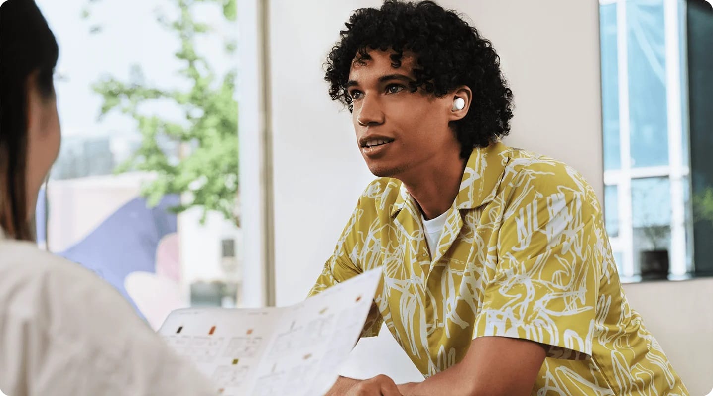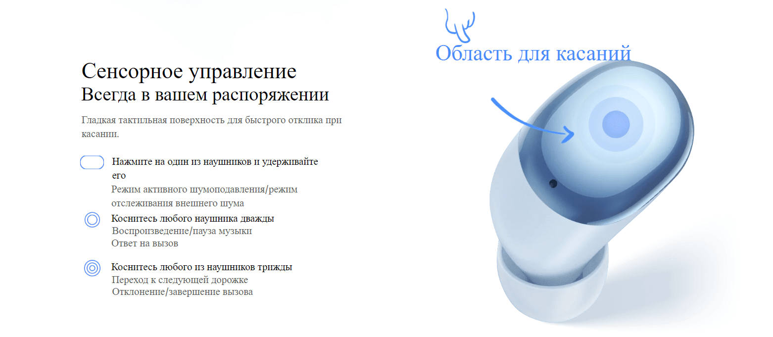 Хотите переключиться с режима прослушивания музыки на режим разговора? При длительном нажатии включается режим отслеживания внешнего шума, и вы можете запросто общаться с друзьями. Включите режим усиления голоса для естественного общения даже при использовании наушников.
