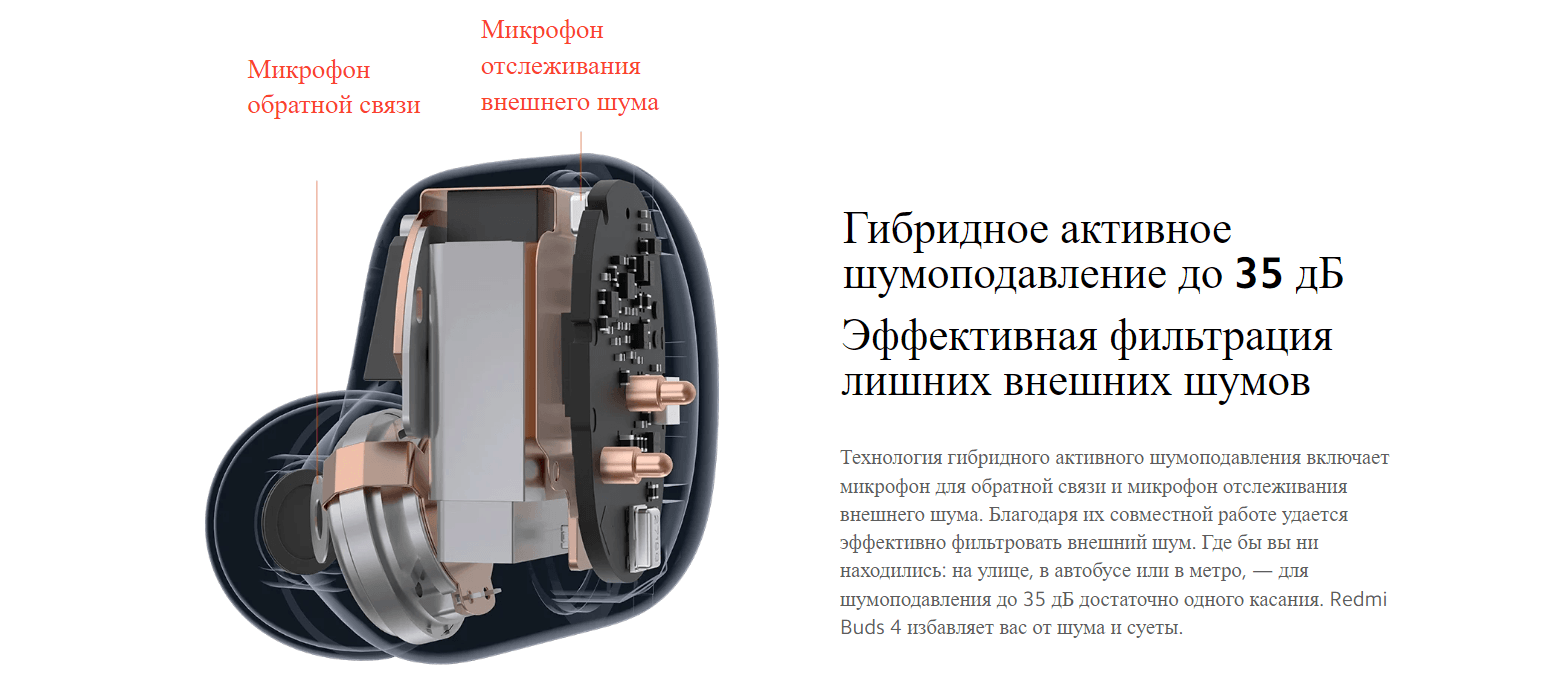 Интеллектуальная калибровка шумоподавления в зависимости от уровня окружающего шума. В адаптивном режиме, основанном на алгоритме ИИ, Redmi Buds 4 обеспечивают интеллектуальное переключение между 3 уровнями активного шумоподавления и большее удобство.