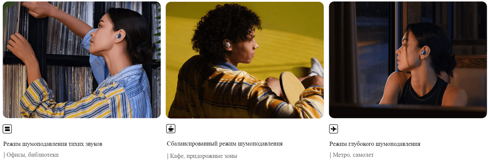3 уровня активного шумоподавления (ANC) и адаптивный режим