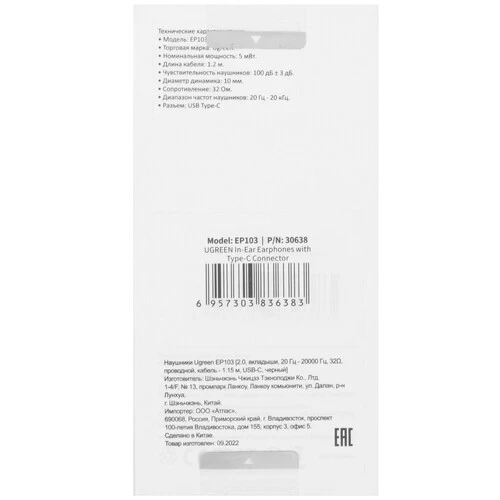 UGREEN EP103 (30631) представляют собой мощные в-ухо наушники с подключением через Lightning-коннектор.