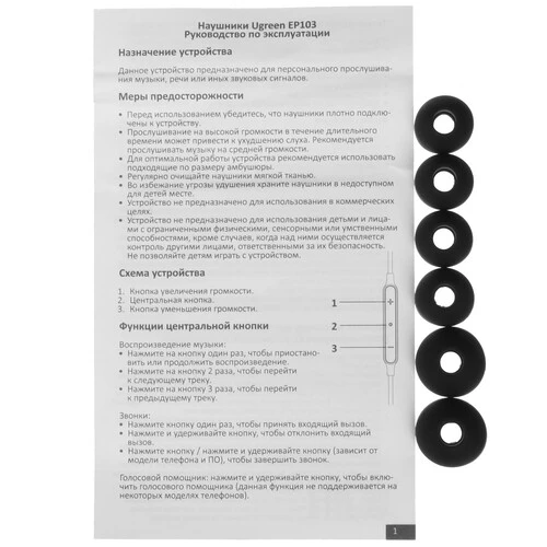 | Комплектация | 3 пары сменных амбушюр, документация |