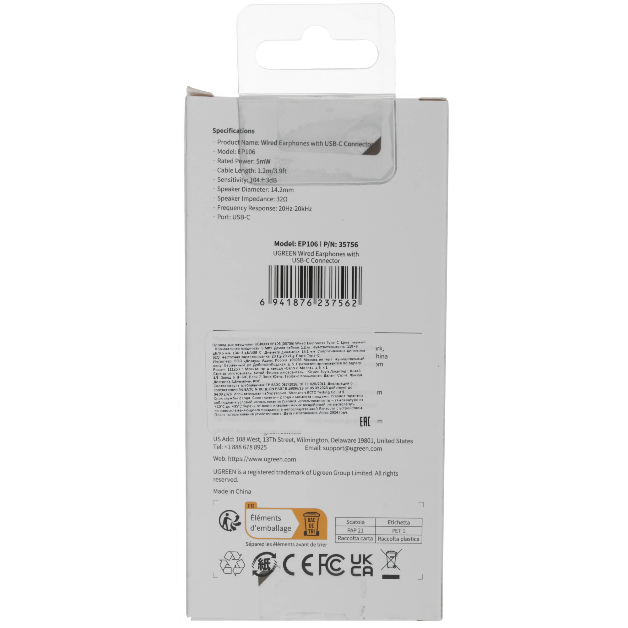 Наушники UGREEN EP106 (35756) Wired Earphones Type-C – Black