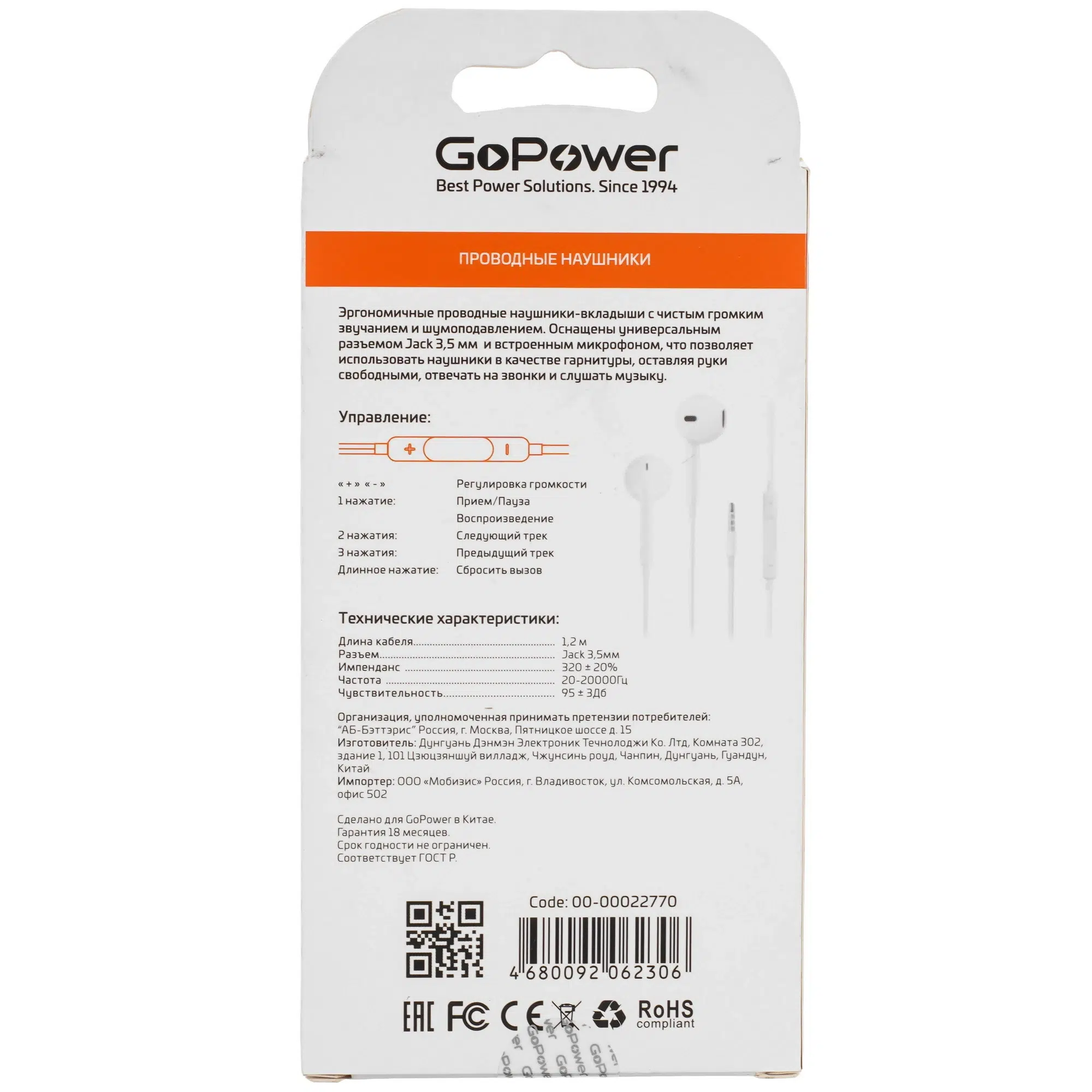 GoPower GPHP05 – наушники вставные, обеспечивающие высококачественный чистый звук. Благодаря тригонометрическому дизайну, они идеально сидят в ухе, обеспечивая комфортный прослушивания на протяжении длительного времени. Поддерживают функцию громкой связи, а также имеют встроенный микрофон и удобную регулировку громкости. Белый внешний вид делает их стильным дополнением любого образа.