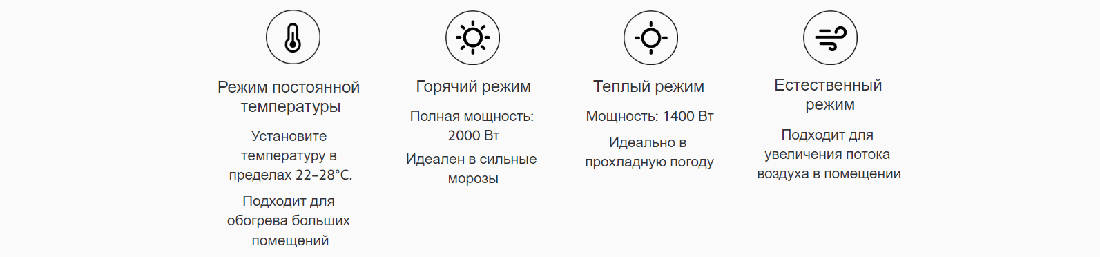 Четыре режима для оптимального комфорта