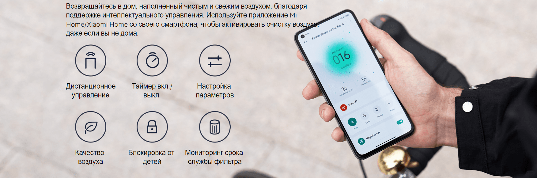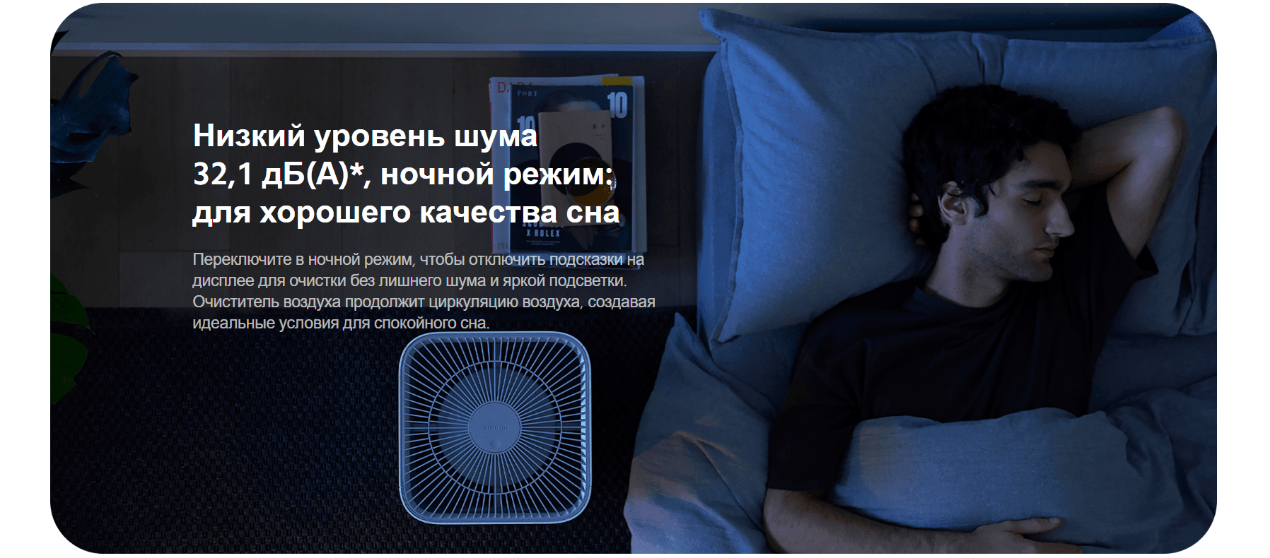 | Особенности | OLED-дисплей, Низкий уровень шума, Ночной режим, Автоматический режим, Таймер, Управление с мобильного телефона, Поддержка голосового управления, Измерение загрязненного воздуха, Прорезиненные ножки, Индикатор включения, Индикатор загрязнения, Индикатор режима работы, Защита от детей, Датчики обнаружения частиц от 0,3мкм |