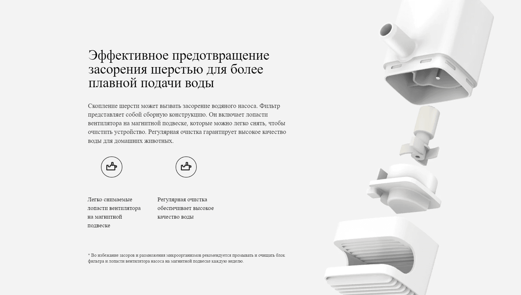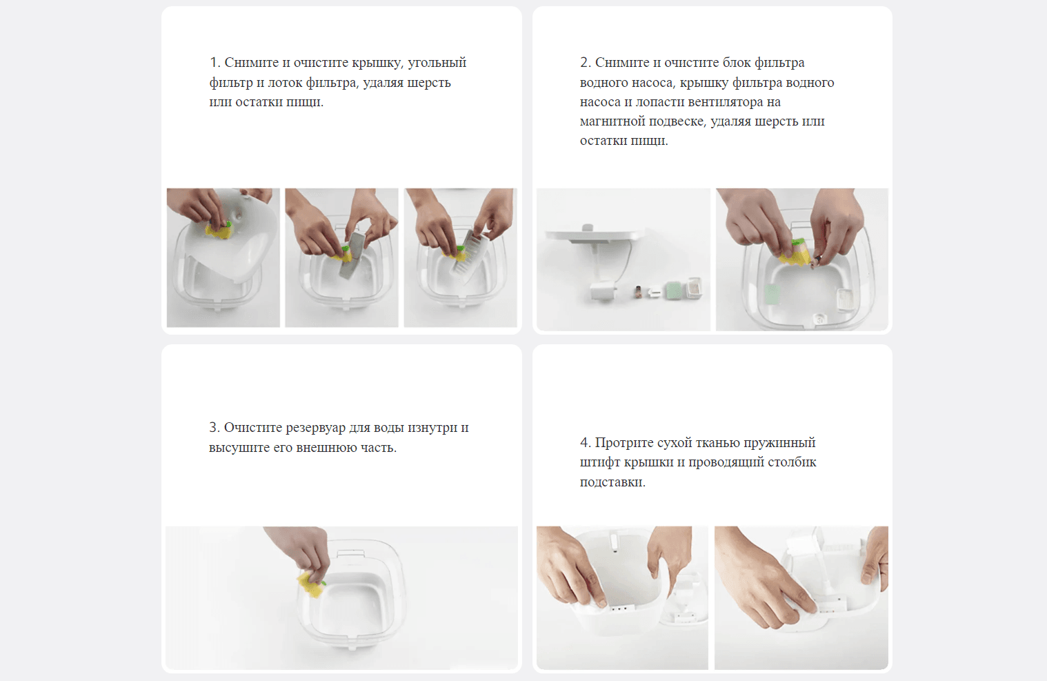 Рекомендуется тщательно очищать компоненты фонтана не реже одного раза в неделю.