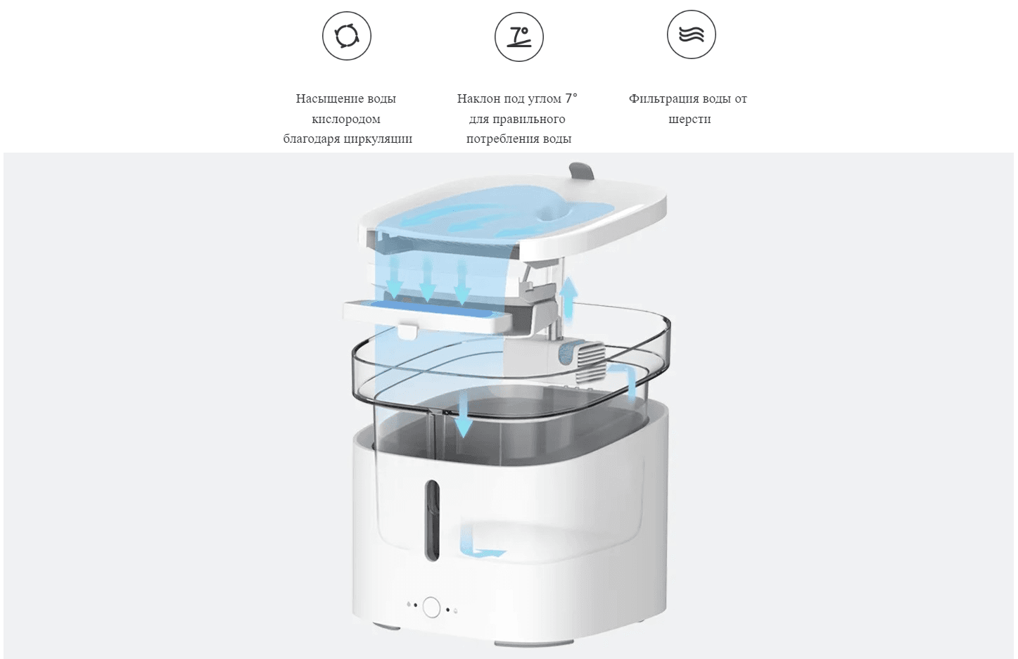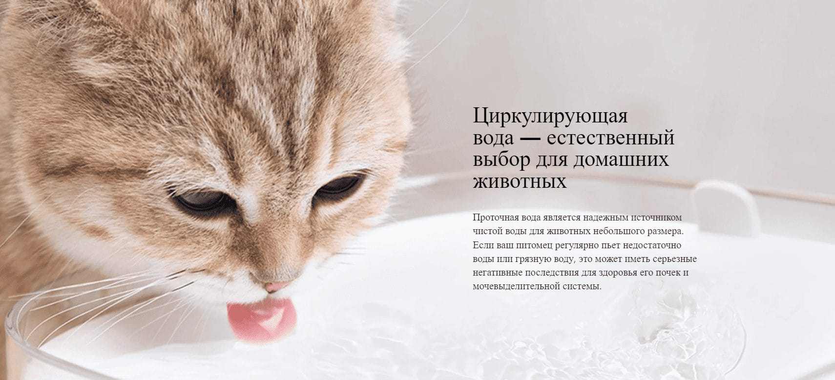 Диспенсер воды для домашних животных Xiaomi Smart Pet Fountain симулирует горную речку. В нем используется водный контур, создающий поток насыщенной кислородом воды, которая соответствует естественным потребностям домашних животных. Также это устройство повышает их интерес к потреблению воды.