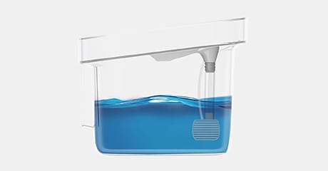 Сеть электропитания скрыта и отделена от водного контура, а светлый резервуар легко и удобно чистить. Подробные советы по очистке смотрите внизу страницы.