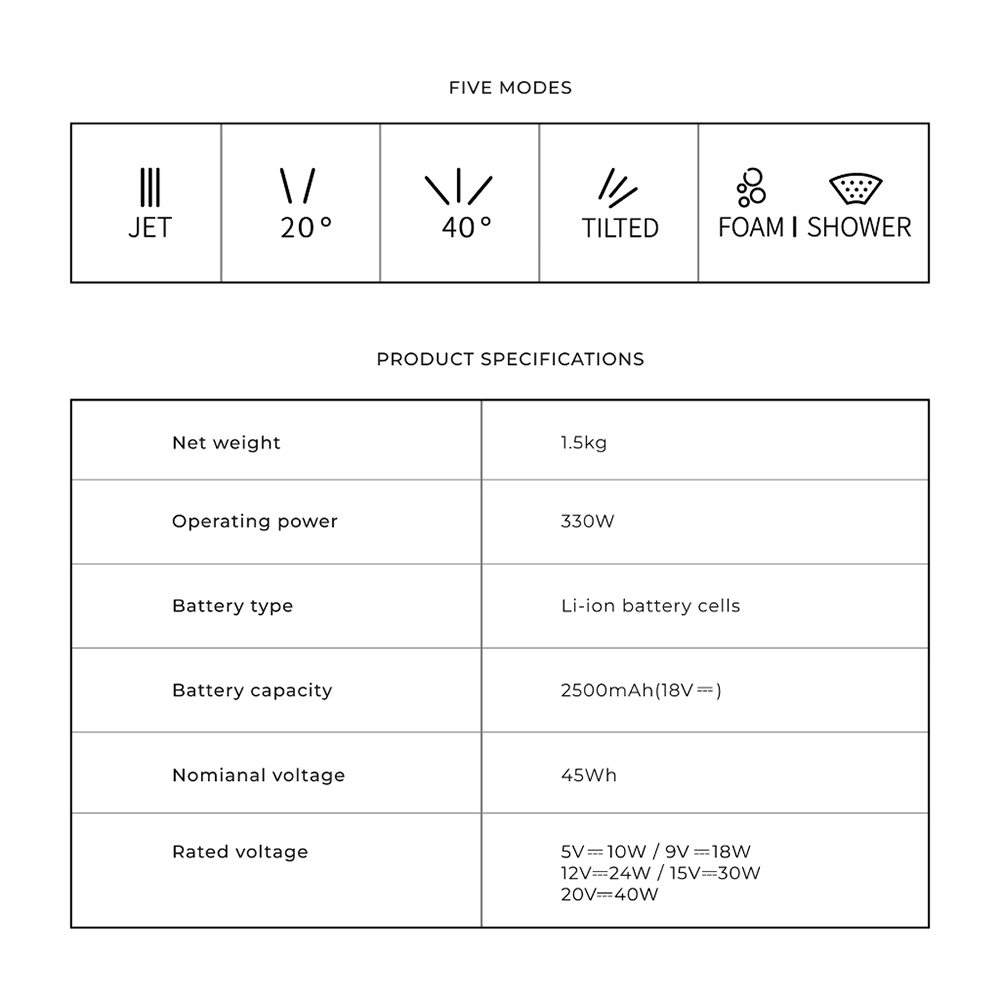 Портативная аккумуляторная мойка высокого давления HOTO 20V Pressure Washer Pro – идеальный инструмент для быстрого и эффективного очищения любых поверхностей: автомобилей, садовой мебели, стен дома и т.д. Благодаря мощному аккумулятору, мойка способна работать до 30 минут без перерыва. Профессиональная модель с регулируемым давлением воды до 24 бар. Удобная в использовании, лёгкая, компактная и портативная.