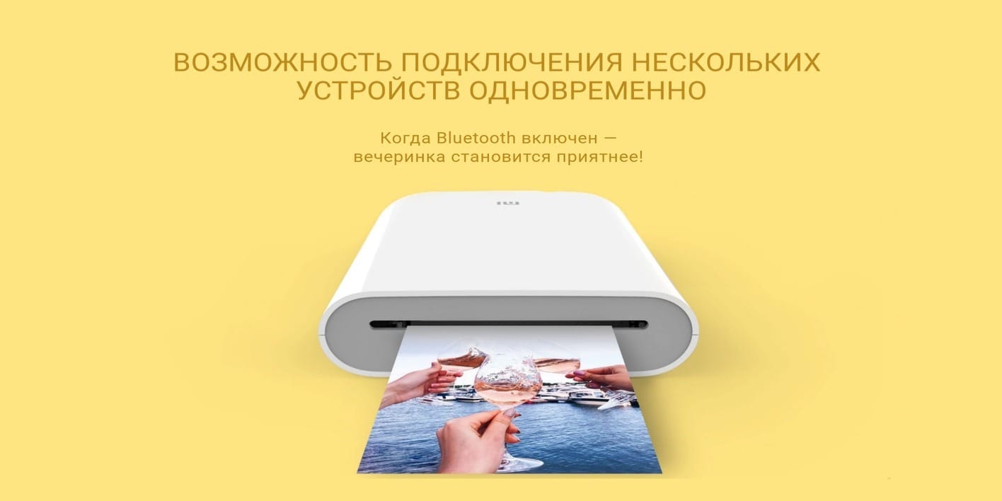 Принтер подключается с помощью Bluetooth к смартфону и синхронизируется c приложением Mi Home. В настройках вы мгновенно можете отправить любое фото со своего телефона сразу на печать.