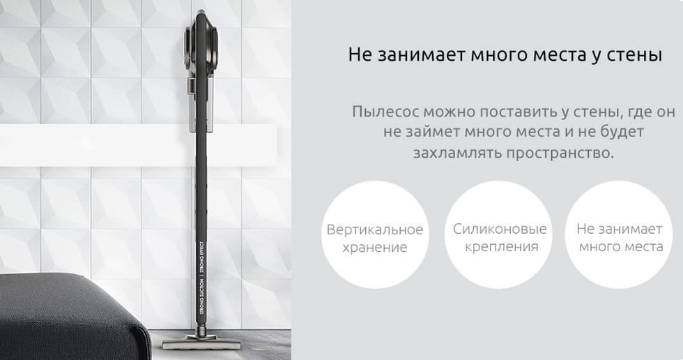 Пылесос Deerma спроектирован таким образом, чтобы его центр тяжести был расположен возле ручки. Сама ручка из двух сегментов отлично подходит для работы удержания пылесоса под разными углами. Кроме того, сам пылесос Deerma лишен неуклюжих форм, способных вызвать усталость после длительной работы в разных положениях.