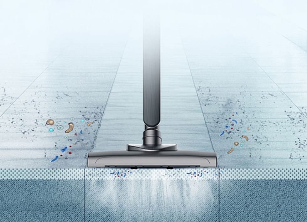 Новый минималистичный дизайн пылесоса имеет оптимизированную конструкцию воздуховодов, позволяющую захватывать пыль со всех сторон и глубоко очищать воздух.