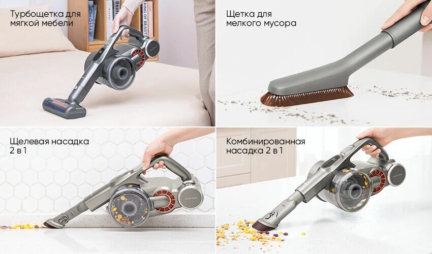 | Насадки в комплекте | насадка для мебели, щелевая насадка, турбощетка, насадка для деликатной уборки, щетка для ковров, насадка для матрасов |