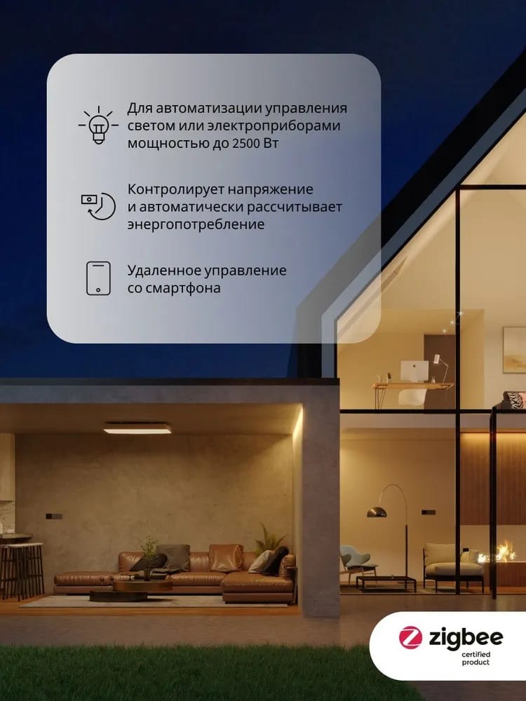 Данная модель поддерживает голосовое управление и различные виды голосовых ассистентов (Google, Алиса, Siri, Alexa). Действует с помощью протокола Zigbee 3.0.