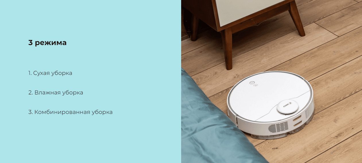 | Режимы уборки пылесоса-робота | Сухая уборка, влажная уборка, полностью автоматическая уборка, режим уборка зигзагом, режим уборка вдоль стены, режим обычная уборка, турборежим |