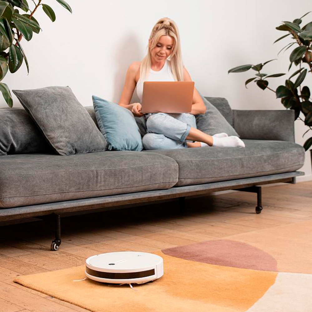 Робот-пылесос также обладает высокой маневренностью. Он может легко перемещаться по различным поверхностям, включая ковры и твердые полы, и способен обходить препятствия, такие как ножки мебели или провода. Это позволяет ему эффективно убирать большую площадь за короткое время.