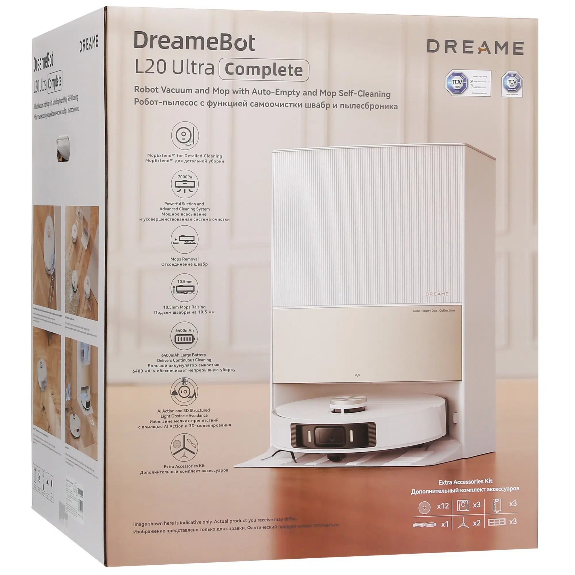 Робот-пылесос DreameBot L20 Ultra Complete оснащен роботизированной док-станцией с функциями зарядки и самоочистки, поэтому требует минимум усилий в обслуживании. Благодаря мощности всасывания 7000 Па он создает интенсивный воздушный поток, который собирает пыль, мусор, волосы, шерсть с гладких и ковровых покрытий.