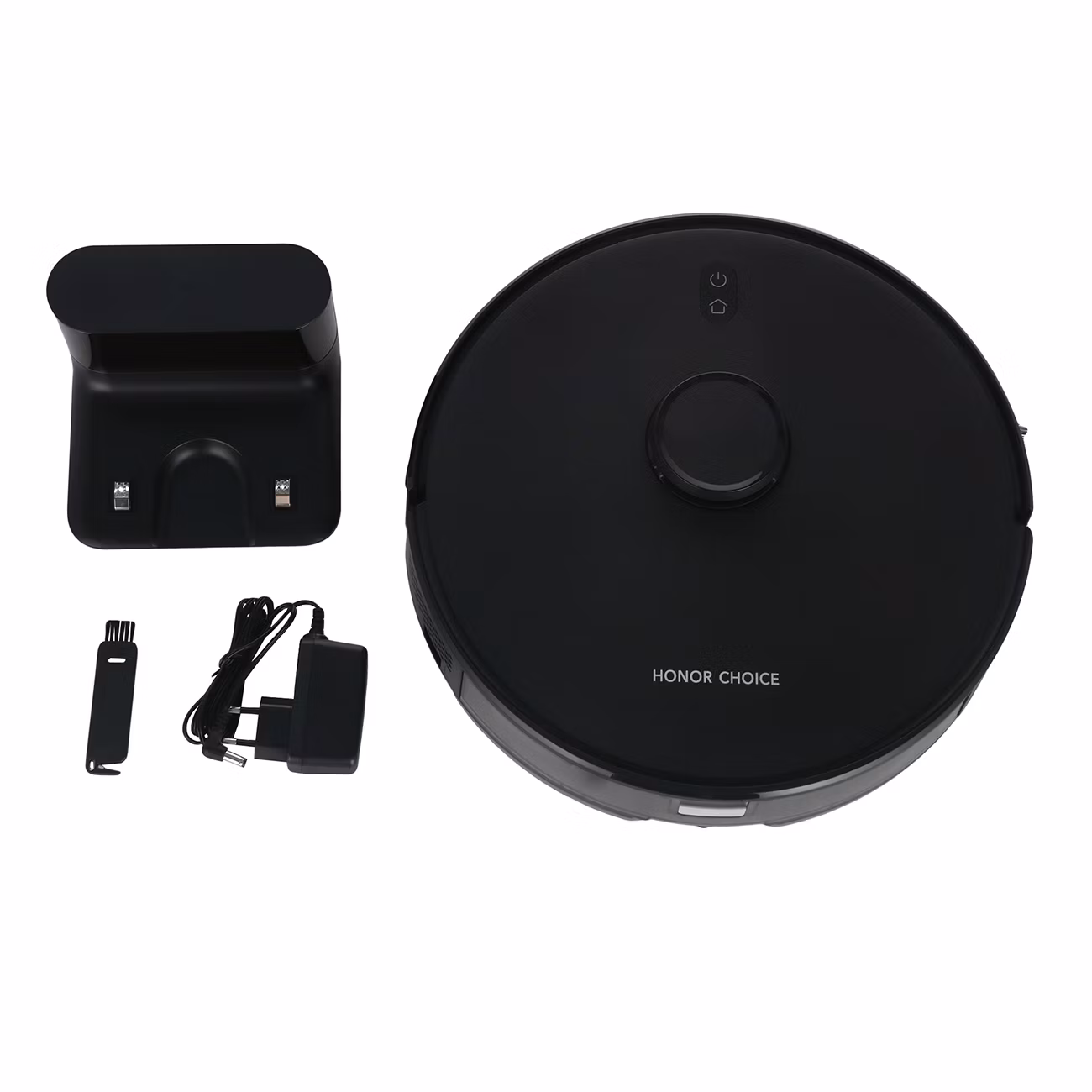 Робот-пылесос Honor Choice R2s Lite ROB-02 в черном корпусе поставляется с зарядной базой.
