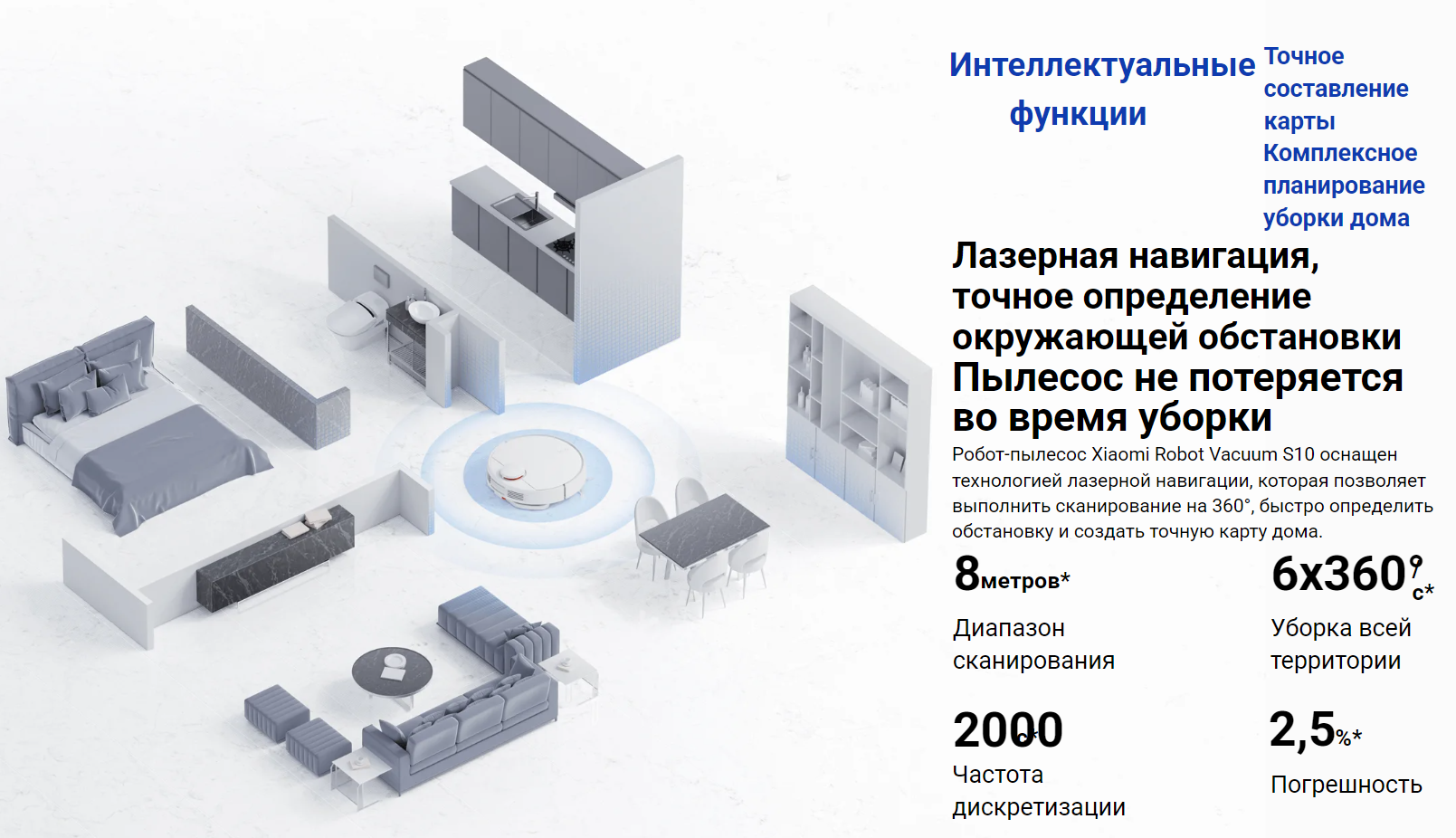 Робот-пылесос оснащен ультрасовременным лазерным датчиком расстояния, который обеспечивает безошибочное определение местоположения, точное измерение расстояния и повышенную производительность.