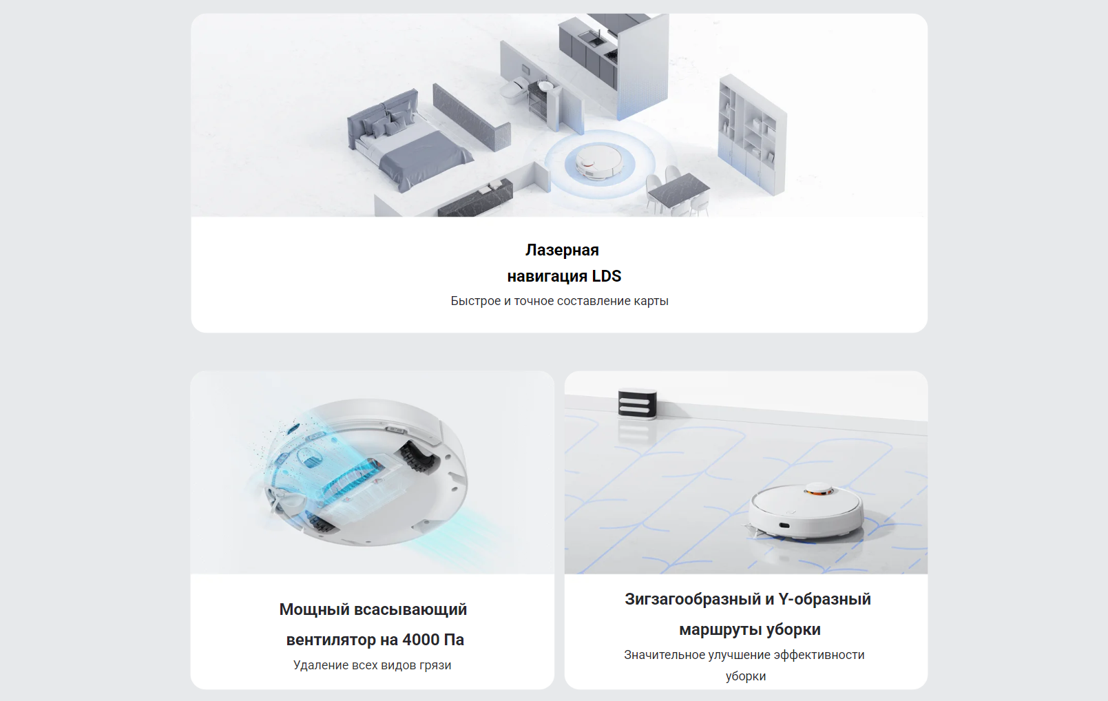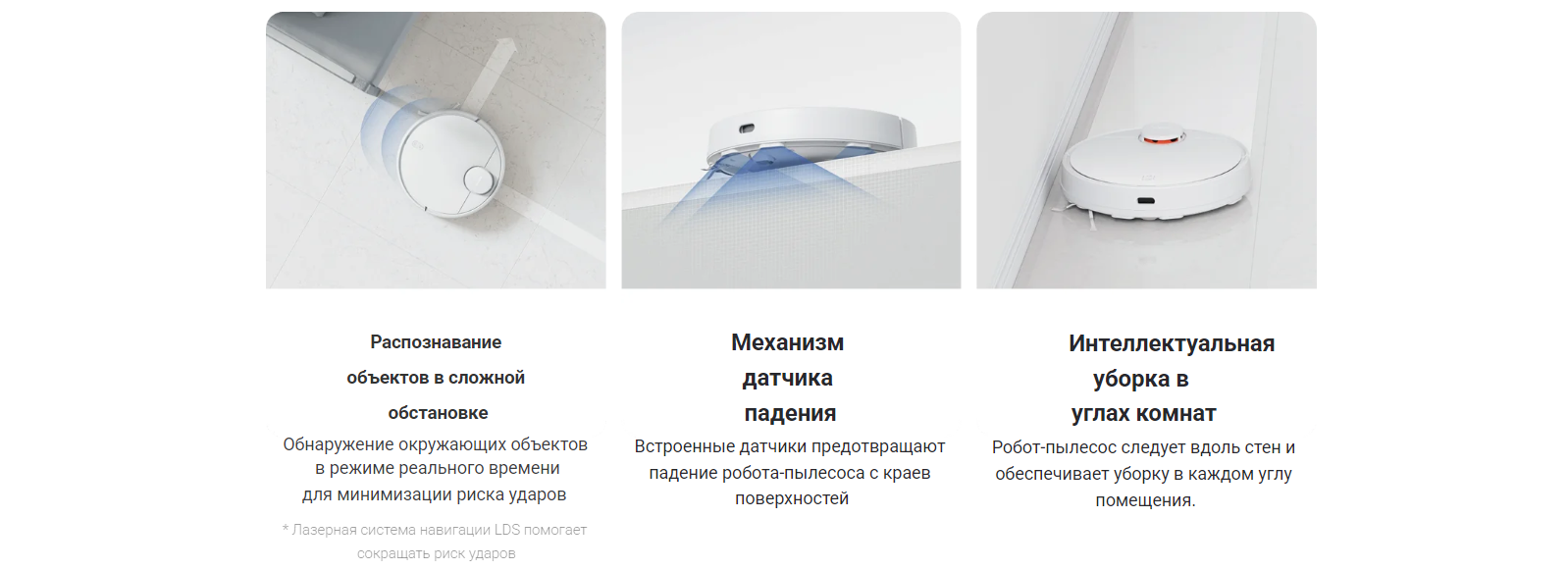 | Типы датчиков и сенсоров | датчик распознавания порогов, датчики обнаружения препятствий, датчик перепада высоты, LDS-датчик, инфракрасный датчик |