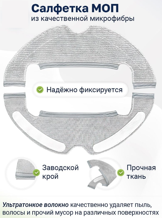 По мере износа салфетки для робота-пылесоса необходимо заменять на новые. В комплектации представлено две салфетки.