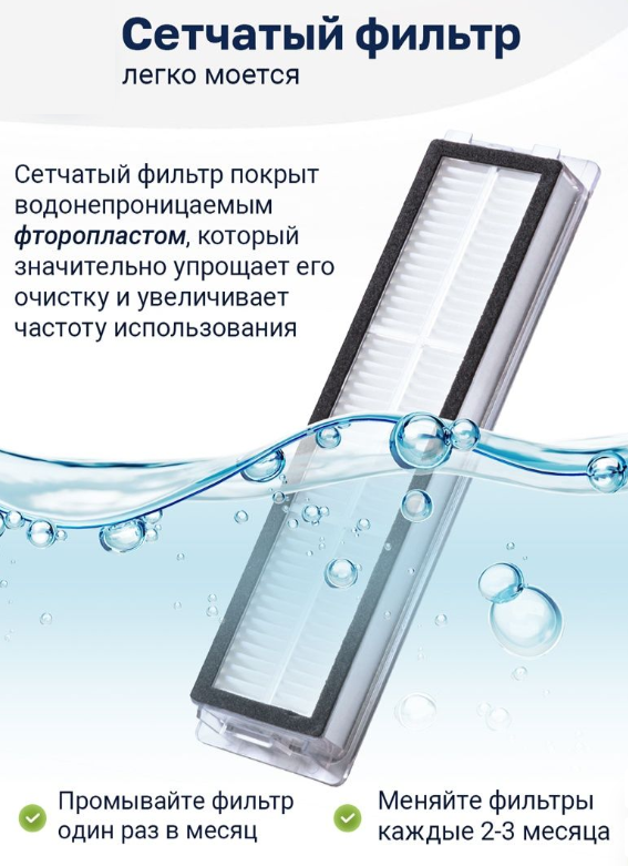- Фильтры обеспечат эффективную очистку воздуха, значительно уменьшая попадание пыли и аллергенов в воздух, которым вы дышите. Фильтры можно промывать и использовать повторно.