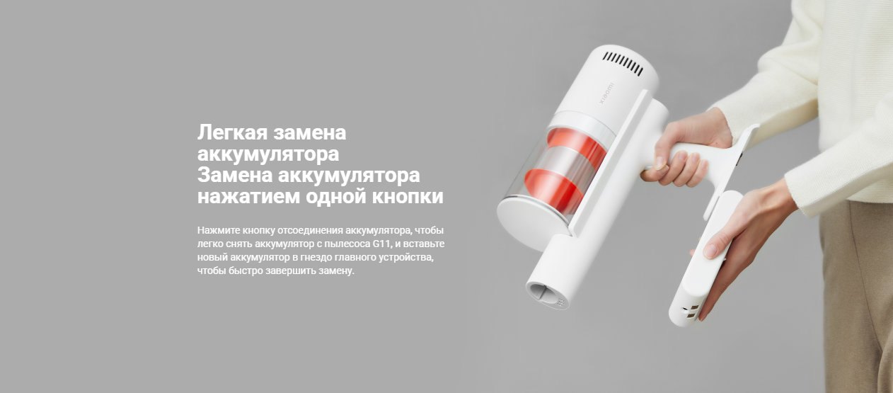 | Комплектация | Сменный аккумулятор Xiaomi Vacuum Cleaner G11 Battery Pack, 1 шт |